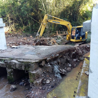 Nesta terça-feira, 03, foi realizada a demolição do restante da ponte antiga da comunidade de Sete de Castro, bem como a limpeza do local. A obra, que está sob a responsabilidade da empresa Artes Concretos Eireli, totaliza um investimento de aproximadamente R$200 mil, de recursos municipais. A previsão é que a montagem das lajes seja realizada nesta sexta-feira, 06, restando para a próxima semana os serviços de ferragem e concretagem. A Administração Municipal ressalta que o tráfego do local está bloqueado, sendo necessária a utilização de rotas alternativas.