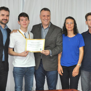 Vinícius José Fritzen estuda na Escola Elisa Tramontina desde a primeira série do ensino fundamental, e segundo a equipe diretiva do educandário sempre foi considerado um aluno diferenciado, estudioso, responsável e um prodígio na área das exatas. Em sua fala, o homenageado destacou que em 2016 participou pela primeira vez da olimpíada, quando obteve medalha de prata. Além disso, informou que já conquistou em outras áreas medalhas de bronze e de prata, dizendo sentir-se honrado com estes feitos, e agradeceu à Prefeitura pelo incentivo à educação.