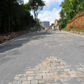 A pavimentação basáltica em trecho da rua Irmã Antônia Venturini segue em andamento. A obra está sendo executada em extensão de aproximadamente 200 metros, no trecho localizado entre as ruas Marechal Floriano Peixoto e Francisco D'Arrigo e totaliza investimento de R$166.237,98. Dividida em duas etapas, a primeira delas contemplou a drenagem e a segunda fase os serviços de abertura de bocas de lobo, execução de meios-fios e, no momento, uma equipe da empresa vencedora da licitação está trabalhando na colocação dos paralelepípedos. Devido aos serviços, o tráfego de veículos no trecho permanece bloqueado.